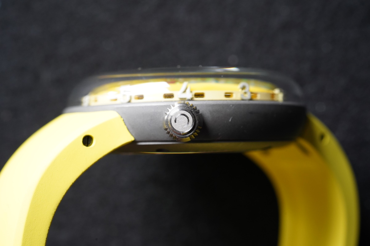 Pour parfaire son look disruptif, la Cronus Art Big Love mise sur un bracelet en fluoroélastomère écologique dont le jaune vibrant rappelle le glaçage gourmand du cadran. Ce matériau technique offre une souplesse supérieure au silicone classique tout en étant extrêmement résistant aux agressions quotidiennes.