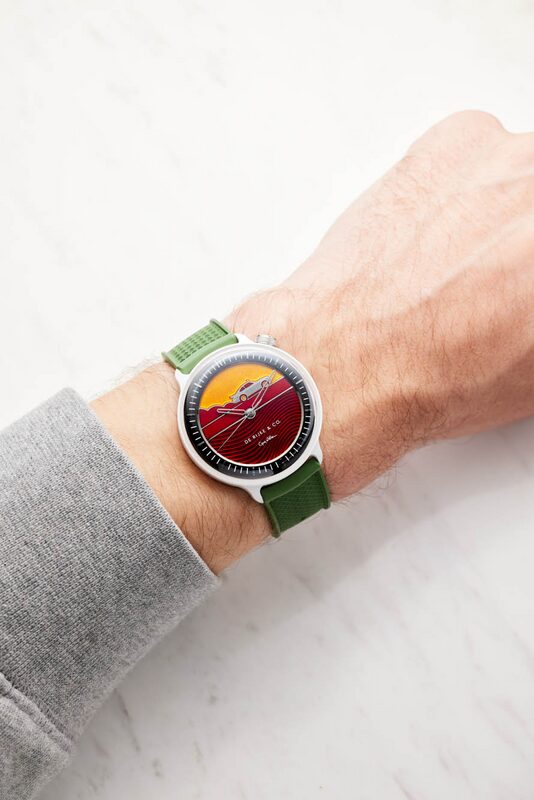 Les trois montres Amalfi de De Rijke & Co., inspirées par l’industrie automobile, transforment cette source d’inspiration en véritables œuvres d’art horlogères. Chacune d’entre elles arbore un design distinctif, mettant en scène des véhicules emblématiques tels que le Land Rover Defender dans un cadre luxuriant ou la Porsche 911 dévalant des dunes chatoyantes.