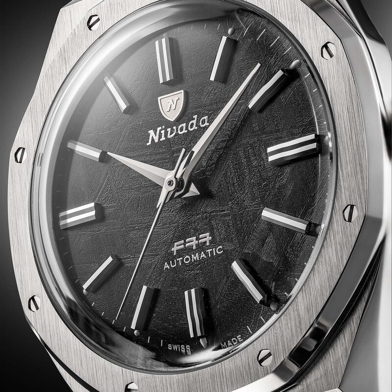 Le design de la Nivada Grenchen F77 MKII est indéniablement inspiré des créations emblématiques des années 70, caractérisées par leurs formes géométriques audacieuses et leur allure sportive. Le boîtier octogonal accentué par une lunette à vis apparentes évoque la solidité et l’originalité, caractéristiques chères aux montres de cette décennie.