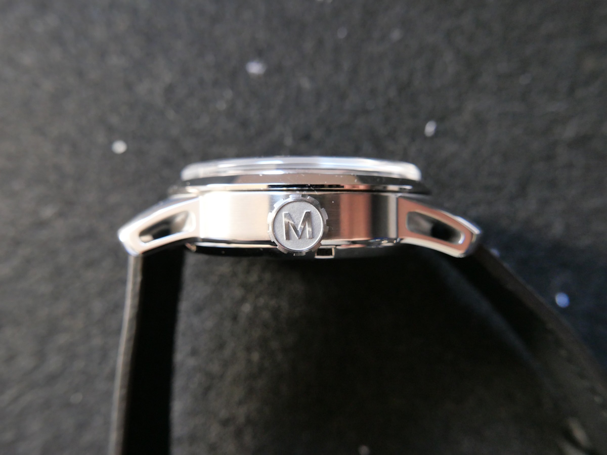 Pour continuer une couronne logotée, positionnée à 3 heures, s’intègre parfaitement au profil du boîtier sans compromettre le confort.