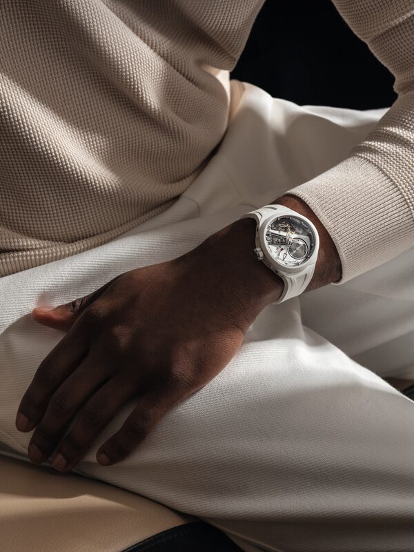 Au cœur de cette pièce de collection, une roue d’équilibre inclinée à 30 degrés. Cela n’est pas qu’un effet visuel saisissant ; c’est une prouesse technique innovante apportant une précision redoutable. Cette inclinaison vise à contrer les effets de la gravité, améliorant ainsi la performance chronométrique de la montre sans le recours à un tourbillon. Les élégants segments en or rouge 5N ou en céramique blanche accentuent le luxe distinctif de l’appareil, rendue d’autant plus exceptionnelle par chaque élément soigneusement orchestré.