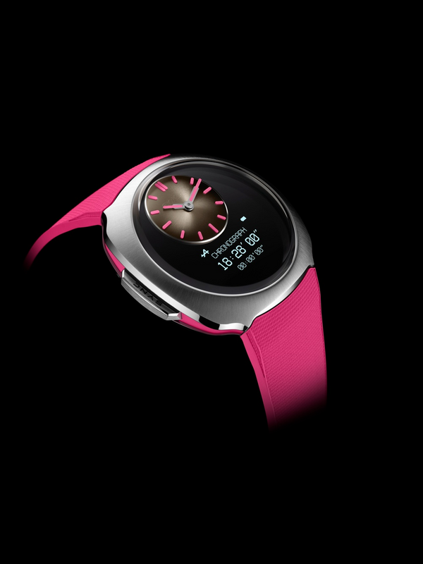 • Bracelet : Caoutchouc rose, boucle ardillon en acier