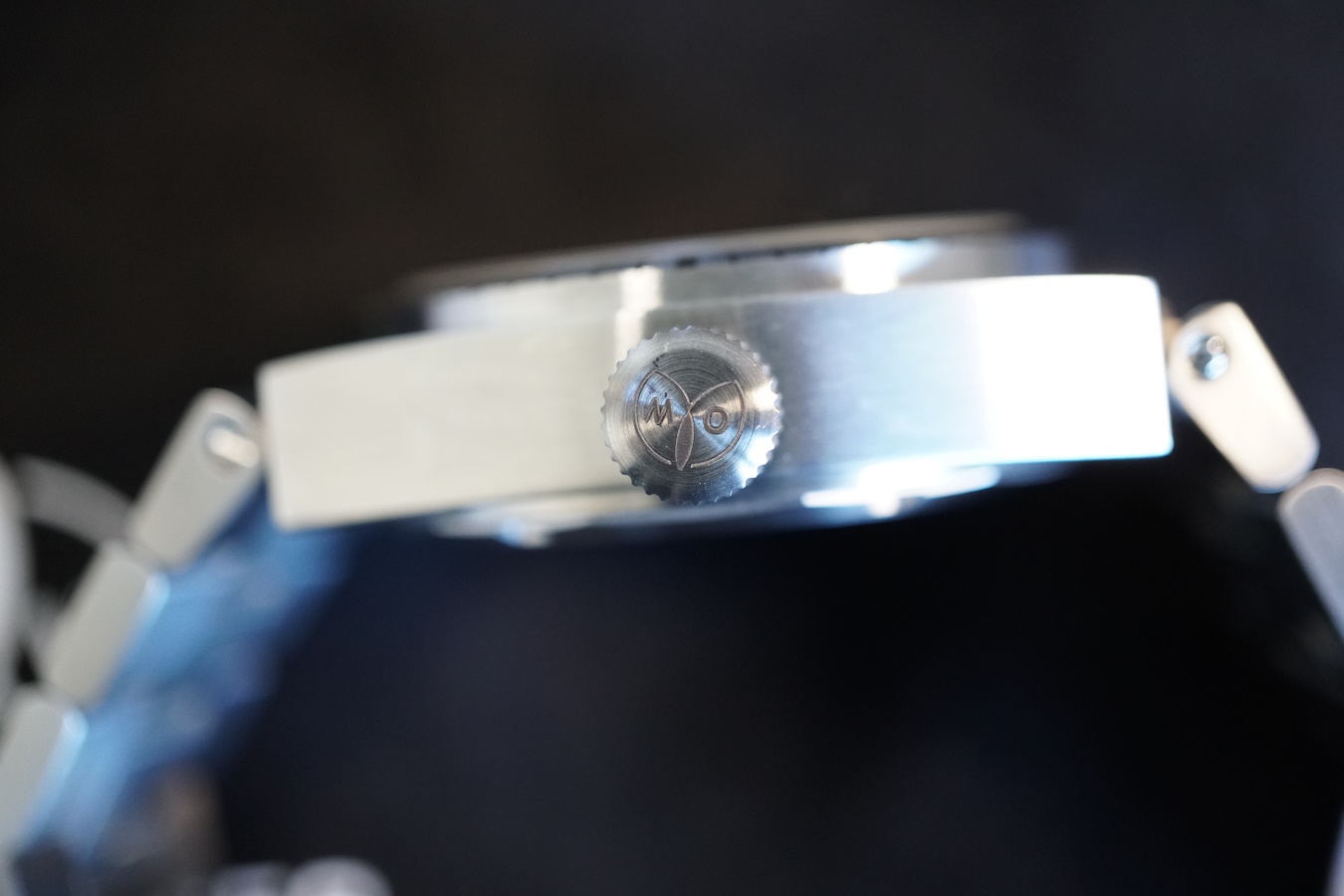 Enfin un fond de boite vissé assure l’étanchéité à 300 mètres. Au centre on retrouve le logo d’Ollech & Wajs ainsi que la mention Zurich 1956. Les inscriptions suivantes décorent la périphérie du caseback: « Swiss Made », « Water Resistant 300M », « Stainless Steel » et « Pilot ».