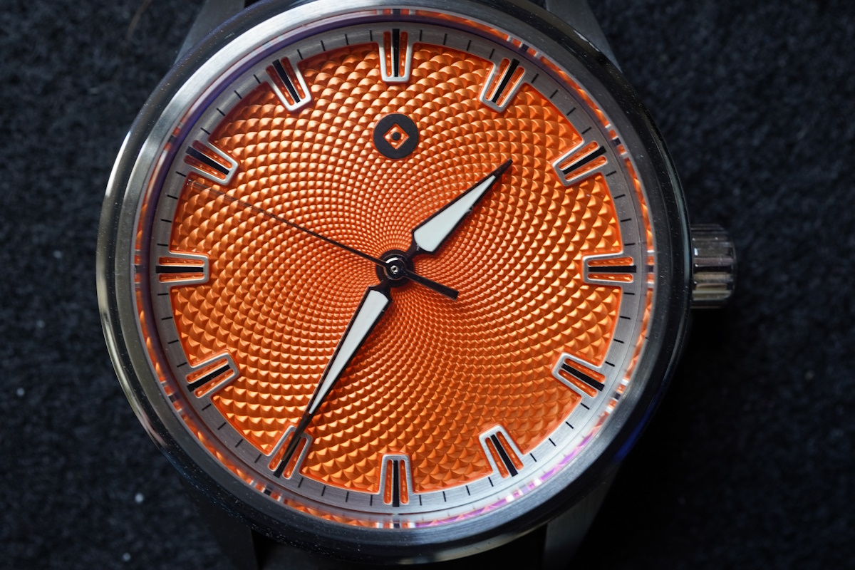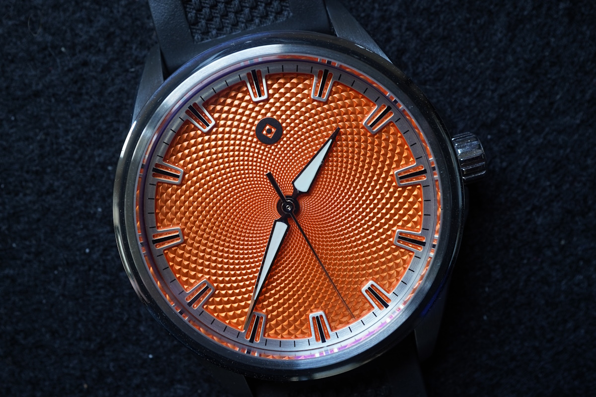 Avec son orange survitaminé et son guilloché hypnotique, il est impossible de passer inaperçu au bureau ou à l’apéro : c’est le genre de pièce qui déclenche des “wahou” spontanés et des envies soudaines de checker l’heure, même quand on la connaît déjà. Et ce n’est pas l’imminent Youtubeur 10ATM qui dira le contraire, lui qui aime secrètement les guillochés CNC et les verres saphir avec un traitement digne d’une Laurent Ferrier.