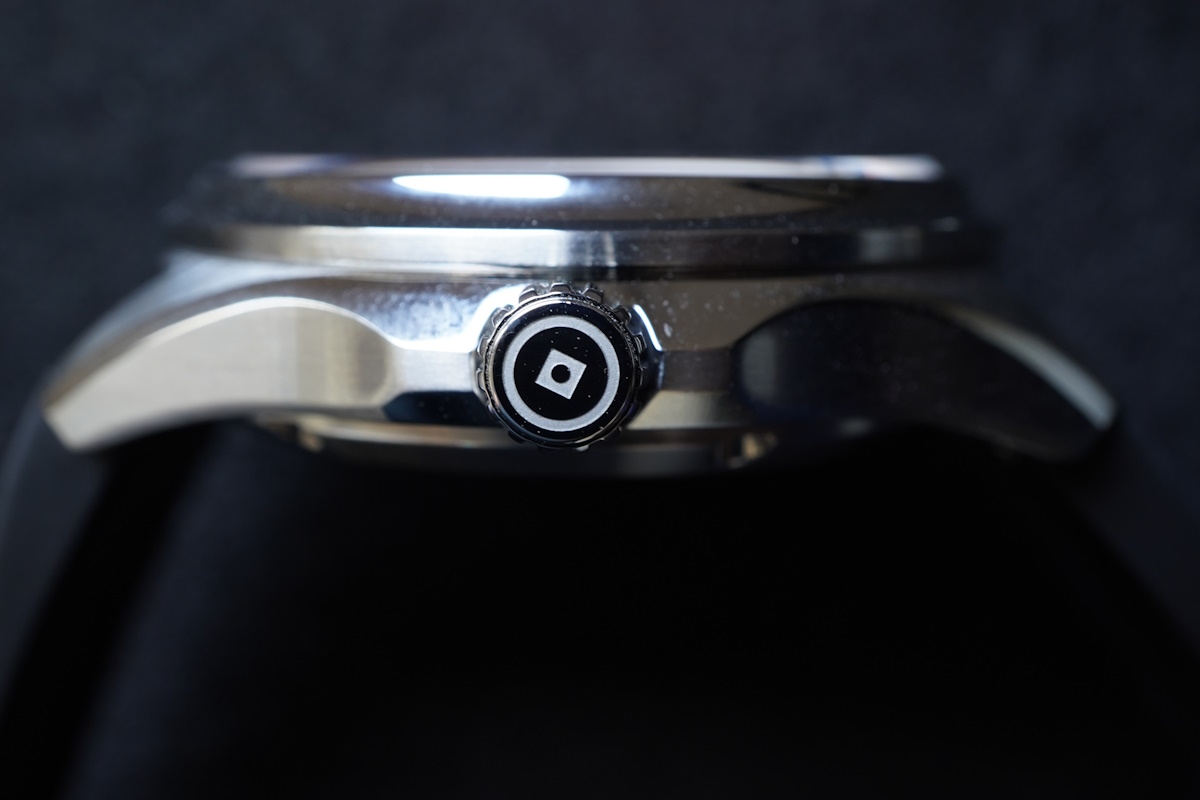 Pour continuer une couronne positionnée classiquement à 3 heures permet une manipulation aisée. Elle est signée du logo Omnis. Elle permet un remontage manuel agréable et un réglage de l’heure tout en douceur.